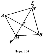 Пусть требуется разыскать центр дуги, изображенной на чертеже 167. Возьмем на ней две произвольные точки, – напр. А и В (черт. 168). Центр круга должен быть, конечно, одинаково удален от каждой из них. А мы знаем, что все точки, одинаково удаленные от двух данных точек, расположены на перпендикуляре, проведенном через середину отрезка, соединяющего эти две точки (§ 55). Проведя этот перпендикуляр, получаем прямую MN(черт. 169), на которой и должен находиться искомый центр дуги. Чтобы узнать, какая именно, из точек этой прямой есть центр дуги, мы избираем на той же дуге другую пару точек, – например, С и Р (черт. 170) и, прилагая к ним те же рассуждения, проводим перпендикуляр LК к середине соединяющей их прямой. Точка О пересечения обоих перпендикуляров и есть искомый центр дуги.