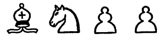 — …То есть: слона, коня и две пешки. Роже Аррасский, в свою очередь, съел у своего соперника вот эти фигуры: