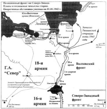 Зимой-весной 1942 года Ставка попыталась осуществить нечто подобное, правда, в сильно ухудшенном варианте и с совершенно негодными исполнителями. Планировался двойной удар на Любань – это не стратегические фланги немецкого позиционного фронта на севере, но, хотя бы, не «бутылочное горлышко» Синявинского плацдарма. 2-я ударная армия, возглавляемая бывшим заместитетелем наркома внутренних дел Г. Соколовым, пошла в атаку. «Люди боялись потеряться, тянулись друг к другу, путали боевые порядки, скучивались, создавая тем самым выгодные цели для ударов артиллерии и авиации противника. Значительно лучше в смысле реакции на местность выглядели лыжные батальоны. К сожалению, их личный состав плохо владел лыжами». (К. Мерецков). Соколова сменил Н. Клыков, армия форсировала Волхов и начала продвигаться к Любани. К весенней распутице армия оказалась в мешке глубиной более 70 и шириной менее 10 километров, утратив всякую подвижность. У немцев также не хватало ни сил, ни подвижности, чтобы ее уничтожить. Но командующий Ленинградским фронтом генерал Хозин, которому в этот период были подчинены и армии Волховского фронта, отвод армии запретил. К середине лета немцы нашли в себе силы медленно савить «мешок» до таких размеров, что он простреливался на всю глубину. Заболевшего Клыкова сменил Власов, который при первой же возможности сдался немцам и в дальнейшем перешел на их сторону, возглавив так называемую «Русскую освободительную армию» (РОА). 2-я ударная армия в составе 7-й дивизий и 6-и отдельных бригад, оставшаяся в окружении без связи, командования, боеприпасов и продовольствия, была целиком уничтожена.
