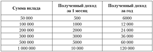 Вы сразу ему предоставляете готовый ответ на его вопросы, и он уже может самостоятельно оценить существующие выгоды («То есть если я размещаю 1 000 000, то каждый месяц буду зарабатывать 10 000»). В таблице все разложено «по полочкам» и удобно для чтения.