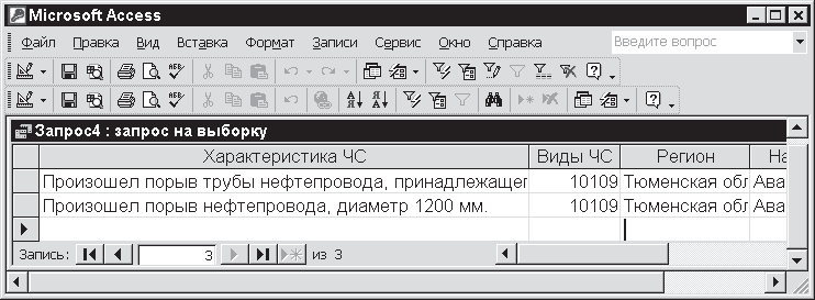 Вам следует ввести полное географическое наименование, а затем щелкнуть по кнопке ОК. Запрос будет выполнен для заданного региона. Например, вы вводите значение Тюменская область и получаете таблицу, которую уже видели на рис. 11.19. Понятно, что точно так же можно задать любой другой критерий. Как видите, типовой запрос оперативен и удобен в использовании.