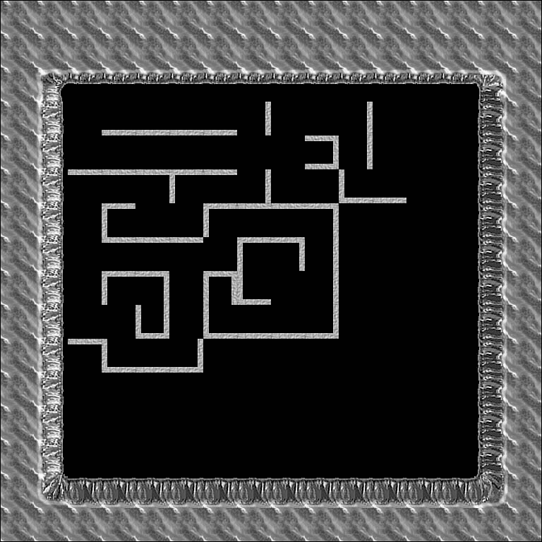 Большая часть слоя-барьера прозрачна – персонаж может свободно перемещаться. Даже фрагмент лабиринта содержит значительные прозрачные области, означающие свободу передвижения героя. Ниже приведен код карты слоя, показанного на рис. 11.4: