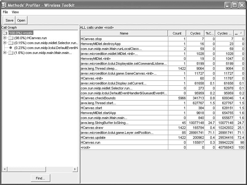 Принципиальная трудность для большинства разработчиков мобильных игр при начале оптимизации заключается не в использовании приемов оптимизации, а в поиске тех 10 % кода, которые будут выполняться 90 % времени. Выявление малой части кода, определяющей быстродействие мобильной игры, – это самая сложная грань процесса оптимизации. К счастью, для решения этого вопроса можно использовать специальный инструмент.