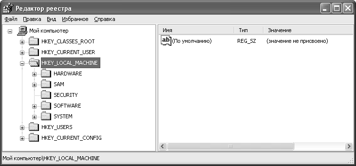Раздел HKEY_LOCAL_MACHINE также содержит основные системные параметры. Если вы инсталлируете приложение, которое определяет конфигурацию для нескольких пользователей, соответствующие параметры появятся именно здесь.