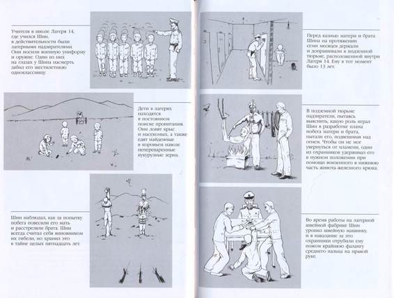 Пищу на место работы доставляли тракторами. В прицепах привозили горы кукурузной каши и дымящиеся бочки капустной похлебки. Шину было уже 15. Вместе с тысячами других зэков он работал на строительстве плотины ГЭС на реке Тэдонган, с юга ограничивающей территорию Лагеря 14. Это был настолько важный и срочный проект, что государство позволило себе трижды в день обильно кормить своих рабов. Кроме того, охранники даже разрешали рабочим, среди которых было около 5000 взрослых зэков и пара сотен учеников из лагерной школы, ловить в реке рыбу и лягушек.