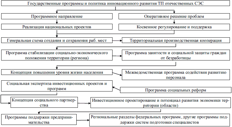 Недостаточная проработанность государственных программ инновационного развития трудового потенциала региональной СЭС приводит к преимущественному формированию процессов создания и ликвидации рабочих мест за счет собственных средств систем, региональных бюджетов, и, если удается, за счет кредитов и заемных средств. В условиях бюджетного дефицита, нарастания социальных проблем, инвестиции, как правило, приобретают внутренний характер на уровне СЭС. Уровень обновления основных фондов ниже уровня выбытия в 3–4 раза, что приводит к сокращению рабочих мест и занятости. Старение оборудования (средний фактический возраст активной части основных фондов превышает 35 лет) вызывает дополнительные издержки на его содержание, усиливая инфляционное давление на экономику. Старое оборудование и отсутствие средств на его замену и модернизацию ориентирует на низкоквалифицированный ручной труд, неизбежное ухудшение качества продукции, снижение заинтересованности СЭС в повышении уровня квалификации своих работников, консервирует техническую и кадровую отсталость отраслей экономики.