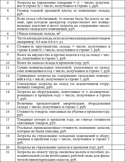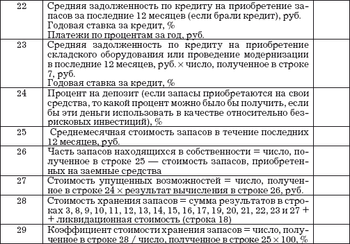 Если принять “стоимость упущенных возможностей” за 10 %, то коэффициент стоимости содержания запасов: