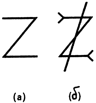 Рис. 2.43. а. Зигзаг в виде молнии, буквы Z над головой мужской фигуры (над Раком) на Круглом Зодиаке; б. Стандартный средневековый астрологический знак Юпитера