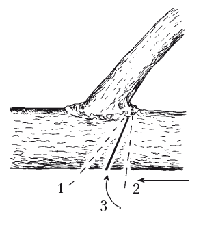 • при вырезке ветки у основания («срез на кольцо») находят утолщенный валик коры и срезают сразу за ним. Если валик незаметен, придется привлечь на помощь пространственное воображение. Мысленно проводят плоскость по линии оставляемой ветки и перпендикулярно вырезаемой. Биссектриса угла между ними и будет плоскостью среза;