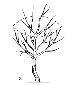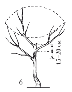Крону формируют в течение 5–6 лет. Весной первого года однолетний саженец срезают на высоте 70–80 см. На штамбе высотой до 30 см все набухшие почки ошмыгивают, а побеги, выросшие из всех почек, оставляют. В первый год следует так ухаживать за растением, чтобы к осени получить приросты побегов длиной не менее 60 см.