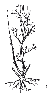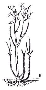 У жимолости и чубушника по окончании основного цикла развития следует вырезать стареющие части стебля до места появления крупной стеблевой поросли. Части стебля, которые из порослевых побегов на вершине кроны одревеснели и являются как бы продолжением основного побега, могут быть оставлены, так как активная жизнедеятельность их может продолжаться еще в течение довольно продолжительного периода (2–3 основных цикла развития). Многолетняя стеблевая поросль у этих кустарников обеспечивает довольно продолжительный срок их жизнедеятельности и декоративности, а своевременная и правильная обрезка позволяет всегда поддерживать их в декоративном состоянии.