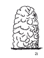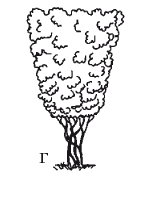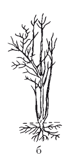 Обрезка кустарников: а – таволга иволистная; б – пузырник; в – таволга городчатолистная