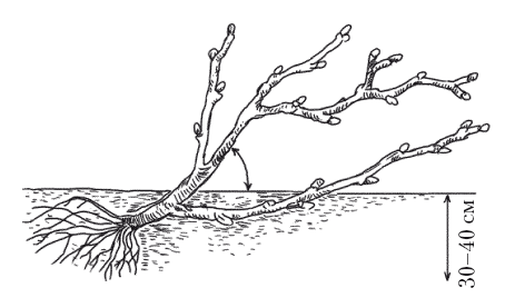 При весенней посадке вполне возможно подмерзание корней саженца. В таких случаях саженцы следует прикапывать на зиму в наклонном положении на глубину до 40 см. С наступлением весны прикопанные саженцы притеняют; это делается для того, чтобы предохранить почки от распускания.