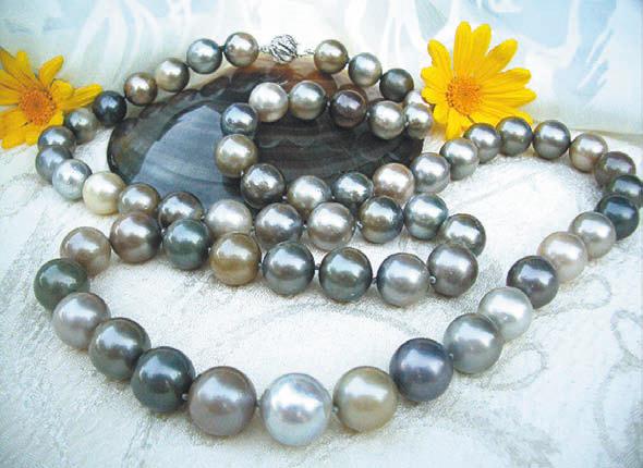 Натуральный черный жемчуг (который на самом деле — серый), имеет играющий цвет, а не просто оттенок, его можно продать за ту же цену, что и белый жемчуг тех же размеров и качества. Цветовые блики на светлой поверхности черного жемчуга могут быть зелеными, розовыми, синими или фиолетовыми.