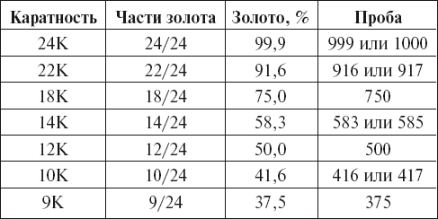 Содержание золота и обозначения