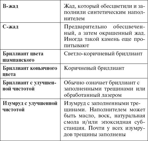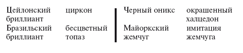 Иногда драгоценные камни продаются под названиями, которые неверно отражают их реальную сущность. Это так называемые искаженные названия. К примеру, гранат может быть назван «Американский рубин» или «Капский рубин», чтобы придать камню больше ценности. Если продавец добавляет к названию камня какое-либо условное слово или префикс, попросите его объяснить, что имеется в виду. Вот некоторые искаженные названия:
