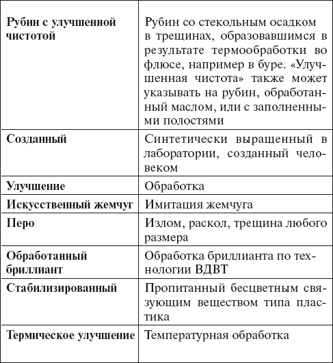 Таблица 10.1 Торговые эвфемизмы и их расшифровка