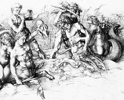 Рис. 1.46. Гравюра А. Дюрера «Битва морских богов». Наверху проставлена дата якобы 1494 год. На самом деле это, скорее всего, 1595 год. То есть, на сто лет ближе к нам. Взято из [1232], номер 4