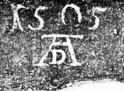 Рис. 1.53. Фрагмент с датой на картине А. Дюрера, датируемой якобы 1505 годом