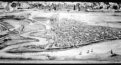 Надо отметить, что история Ярославля до XVII века совершенно темна в миллеровско-романовской истории. Как и должно быть, поскольку, согласно нашим результатам, всю старую историю отняли у Ярославля и отнесли к Новгороду на Волхове. На бумаге, конечно.