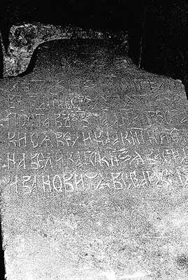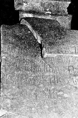 Рис. 2.17. Гробница якобы Софьи Витовтовны, жены Василия II Темного. Якобы XV век. Крышка гробницы с грубо процарапанной надписью «Со(фита)(ятъ) инока», то есть «Софе инока», или «София инокиня»