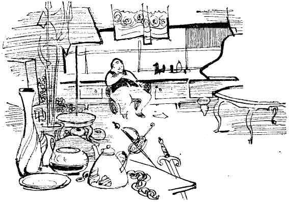 Через четверть часа Робер и Поль входили в лавку торговца подержанными вещами, расположенную в узком, кривом переулке. Стоя за прилавком, папаша Ледрю усердно склеивал какую-то фарфоровую вещицу, видимо только что приобретенную. Толстый, с оплывшим коротким туловищем и одутловатым серым лицом, лишенным не только бороды и усов, но и бровей, с маленькими сердитыми черными глазками — две изюмины в белом тесте, — папаша Ледрю повернул к двери свою круглую голову, повязанную в виде чалмы красным вязаным шарфом, и крикнул высоким, раздраженно-визгливым голосом: