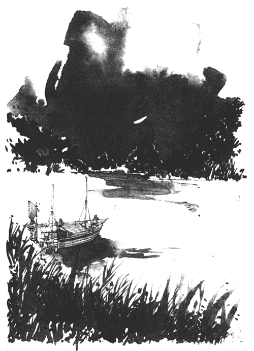 Таким образом, когда мы поплыли дальше на север, на Тернате, оба наших художника были весьма довольны. Мы проходили длинный пролив, отделяющий большой, усеянный вулканами и покрытый лесом остров Хальмахера от цепочки лежащих в море вулканических пиков, которые образуют ряд конических островов. Это один из самых эффектных и впечатляющих проливов в мире. По обе стороны вздымаются вершины вулканов, некоторые из них действующие, а в одном из них — на острове Макиан — ясно видно отверстие в стенке кратера, образовавшееся, когда страшный взрыв разнес конус на части. Море вокруг нас изобиловало всевозможной живностью. Шестиметровые малые полосатики поднимались на поверхность и пускали фонтаны воды, одновременно можно было увидеть трех-четырех китов. Стремительно рыскали по проливу дельфины. Их появление упреждали пронзительные крики чаек, которые кружились над водой, то и дело ныряя за подогнанной к поверхности рыбой. В волнах непрерывно сверкали круглые черные спины и головы — вода бурлила, дельфины безжалостно преследовали косяк рыб, нападая на крайних и постепенно сгоняя всех в плотную кучу, чтобы было удобнее охотиться.