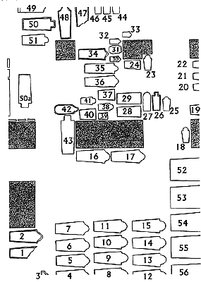 Рис. 1. План расположения гробниц якобы русских цариц и великих княгинь в подклете Архангельского собора Московского Кремля. Гробницы перенесены сюда из женского Вознесенского монастыря в Кремле