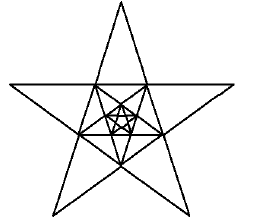 В пентаграмме (рис. 40в) – пятилучевой звезде – каждая из пяти линий делит другую в отношении золотого сечения, а лучи звезды являются золотыми треугольниками. Внутри звезды находится правильный многоугольник, пересечение диагоналей которого дает еще одну звезду золотого сечения, и так до бесконечности.
