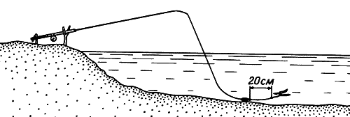 Снасть для дальнего заброса. Однажды солнечным осенним днем, продвигаясь по берегу Яузского водохранилища в поисках рыбы, я вышел на мелководный залив. Вода в нем была прозрачная, вблизи берега видно желтовато-серое дно, местами покрытое темными водорослями. Поискал глазами рыбу, но вся живность как будто вымерла — никаких подвижек в воде. Вдруг на середине залива я заметил обширное темное пятно. Подумал, что это водоросли, и, зайдя в воду, осторожно стал пробираться ближе, надеясь на большей глубине обнаружить рыбу. Когда пятно стало двигаться, я вначале решил, что это падающая от облаков тень. Каково было мое удивление, когда я увидел огромный, плотный косяк рыб. Они казались размером с ладошку и плыли в мою сторону. По всей вероятности, это была плотва. Я затаился, а когда стая подплыла, послал прямо в ее середину крючок с мотылем. Поплавок скрылся под водой, но не всплывал. Я не сразу понял, что это поклевка. Когда подсек, на леске заходила приличная плотва. Испугавшаяся стая повернула от меня, и, пока она уплывала, я успел поймать еще пару рыб. К сожалению, моя удочка не была приспособлена для ловли с дальним забросом, и я с досадой продолжал наблюдать за безнаказанно разгуливающим косяком.