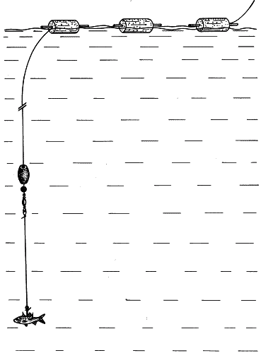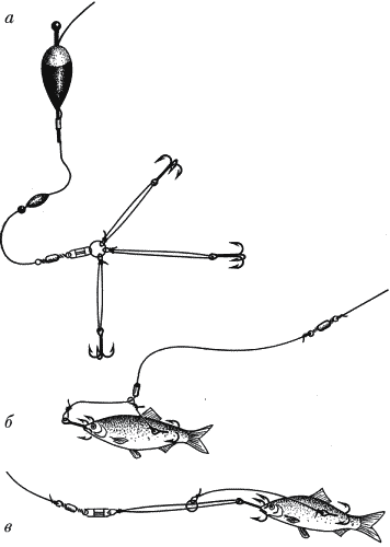 Рис. 199. Оснастка с тройным вертлюжком для ловли на течении