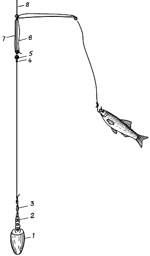 При забросе нужно натяжением лески ощущать контакт падающей оснастки с дном и ни в коем случае не ослаблять леску, иначе может произойти запутывание поводков, а при ловле на каменистых грядах зацеп.
