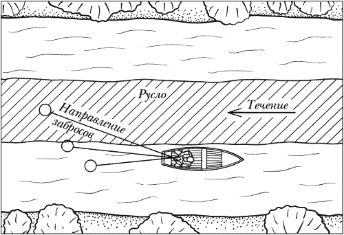 На малых реках. В этом году в начале июня я ловил на Тверце. Недалеко от села нашел подходящий, нечетко выраженный заливчик. От моста, между свай которого быстро течет вода, шла отбойная струя, закручиваясь на омуте. Промерил глубину — в районе залива до 30 м от берега она составляла 3–5 м. Остальные глубины на ближайшем протяжении преимущественно 1–1,5, реже — 2 м. Решил, что здесь самое подходящее место для ловли. Закинул три фидера — два непосредственно в омут, а один на выход из него, левее по течению, как раз в то место, где закручивалась струя. Поскольку на берегу били родники и он был топкий, воткнул удилища прямо рукоятками вертикально в берег. Удилища я взял все по три метра. Кончики у них гибкие, подобранные под среднее течение и не очень тяжелую кормушку. Пока было светло, ловил вприглядку, определяя поклевки мелкого подлещика по вибрации кончика удилища. Как стемнело, к вершинкам удилищ прикрепил колокольчики на прищепках. Мои звуковые сигнализаторы устроены таким образом, что после защелкивания прищепки на хлыстике удилища колокольчик вводится внутрь прищепки и, распирая ее, не дает ей слететь при подсечке и подмотке. Первый лещ на 800 г клюнул в 11.30 на самую левую донку, которая была заброшена на суводь, т. е. фактически на участок выхода из ямы. Второй, чуть меньше, взял через полчаса на эту же донку. После этого одну донку из омута я переставил также на участок выхода из ямы, и на нее тут же случилась поклевка. Уже попался лещ на кило триста. И только около двух часов сработала донка, стоящая в яме. После этого клев как отрезало. Видимо, лещи в промежуток с 11 до 2 часов выходили из ямы в место, куда отбойная струя сносила корм, а в два часа они снова ушли в яму, и на этом их ночная кормежка закончилась. К этому примеру могу добавить, что на Шерне, которая значительно уже Тверцы (местами ее ширина не более пятнадцати метров), мне приходилось ловить леща на русловом углублении, проходящем прямо посередине реки. При этом поклевки происходили в самых глубоких местах в центре ямы. Видимо, здесь лещ поджидал сносимый течением корм. Однако удивляет то, что, казалось бы, хорошо приготовленная пахучая прикормка должна была привлекать леща и к другим донкам, которые были заброшены не весть как далеко друг от друга, но этого не происходило. Очевидно, лещ настолько привыкает к своим ночным маршрутам (длинные они или короткие), что нисколько изменять их не желает.
