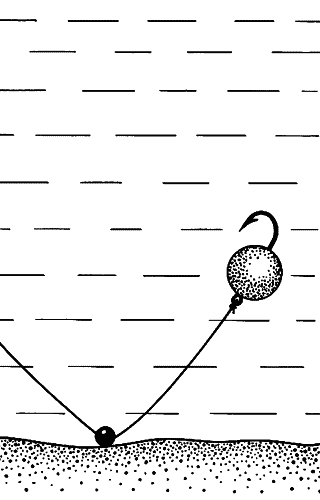 Рис. 33. Оснастка с грузилом на леске и пенопластовым шариком на крючке