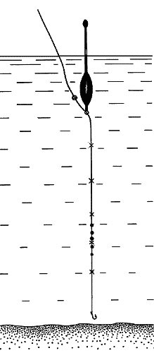 Рис. 71. Система огрузки поплавка с двумя основными грузилами