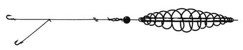 Когда насадка под воздействием ветра волочится по дну, заметить поклевку линя непросто. В этом случае приходится утяжелять снасть: оснащать поводок подлеском с дополнительными грузилами (рис. 108), выбирать лески с меньшей парусностью, использовать скользящие грузила и специальные поплавки. Но вместе с тем в условиях непогоды линь становится менее осторожным, и хотя ветер поднимает волну, донную муть, в воду падают сломанные ветки, сучья, другие посторонние предметы, выглядит это вполне естественно. Таким образом, естественный шумовой фон может служить помощником во время разбрасывания прикормки и заброса снасти. И все-таки шумных и резких движений лучше избегать.