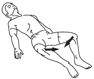 Упражнение 5. Исходное положение: отведите больную ногу в сторону и назад (рис. 5 а). Вытяните пальцы и разверните их наружу. Подтяните медленно ногу вперед, к середине, выполняя диагональное движение, и верните ее в исходное положение (рис. 5 б).