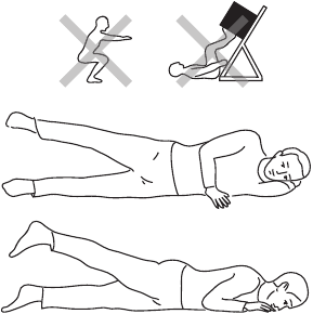 Устройтесь удобно на спине. Для некоторых упражнений необходима подушка или полотенце. Постоянно следите за тем, чтобы позвоночник не прогибался. Для этого необходимо сгибать в тазобедренном суставе ногу, которая не участвует в упражнении.