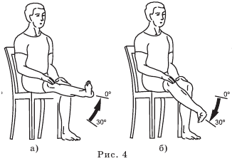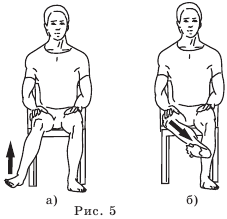 В то же время вполне допустимы упражнения с выпрямленными ногами (рис. 3 а, б). Они улучшают кровообращение в мышцах бедра и голени, интенсифицируют обменные процессы в суставах, укрепляют связочный аппарат.