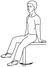 Упражнение 4. Раскачивание ноги. Удобно устроившись на здоровом бедре, используя край стола, свободно раскачивайте ногой (рис. 8). То же движение можно делать стоя, опершись на стол со здоровой стороны.