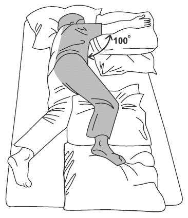 8. Здоровая нога в «шаговом» положении на подушке, колено и бедро слегка согнуты.