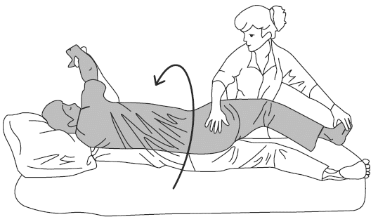 1. Пациента поворачивают через пораженную сторону с согнутыми коленями.