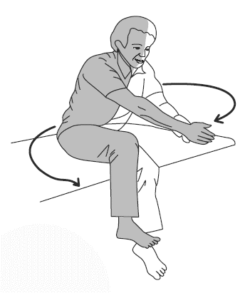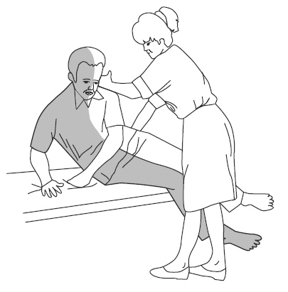 2. Пациент опирается здоровой рукой о край кровати.