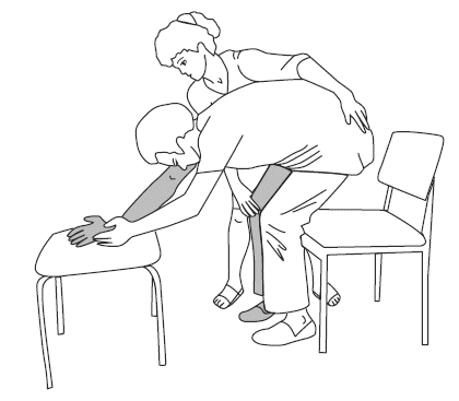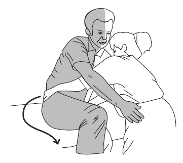 3. Помощник стоит с пораженной стороны, одна рука поддерживает здоровую сторону за бедро, другая располагается на пораженном колене.