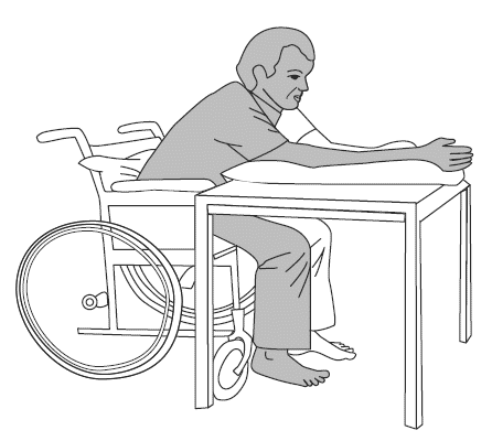 2. Руки впереди, локти поддерживаются на столе.