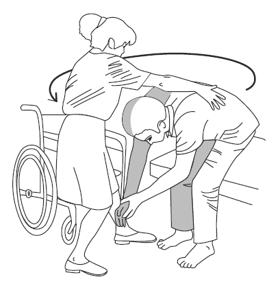 2. Пациент наклоняется вперед так, чтобы видеть свои стопы и поднимает таз.