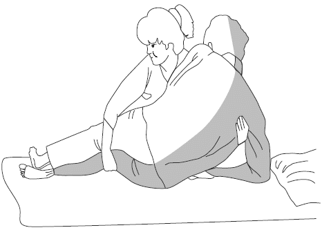 3. Помощник направляет движения, придерживая пациента за здоровые бедро и плечо.