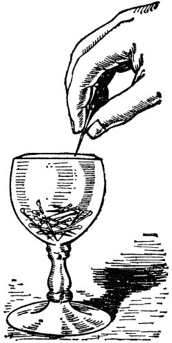 Рис. 36. Поразительный опыт с булавками в бокале воды