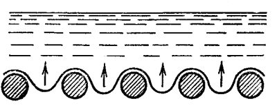 Почему же вода не проливается? Потому что, не смачивая парафин, она образует в ячейках решета тонкие пленки, обращенные выпуклостью вниз, которые и удерживают воду (рис. 38).