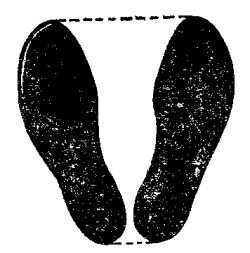Рис. 9. Когда человек стоит, отвесная линия, проведенная из центра тяжести, проходит внутри площадки, ограниченной ступнями